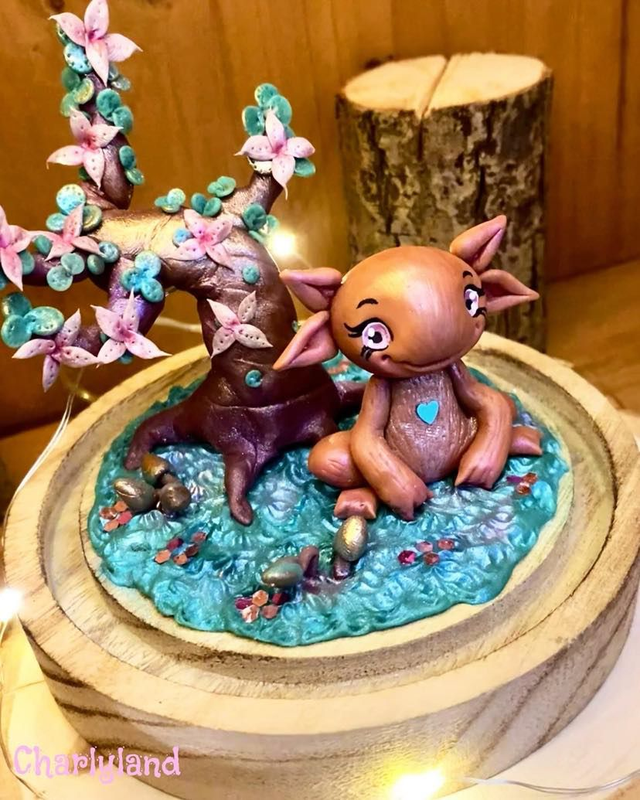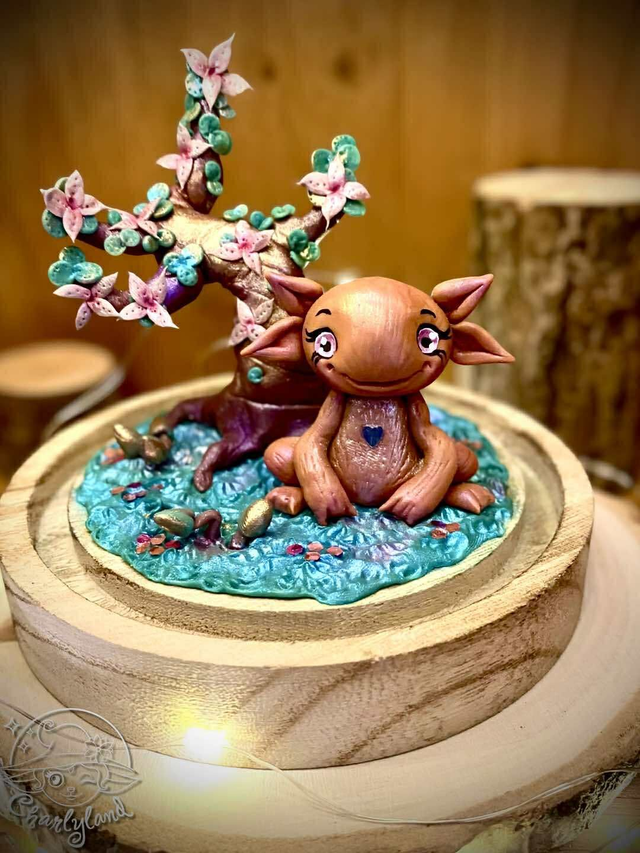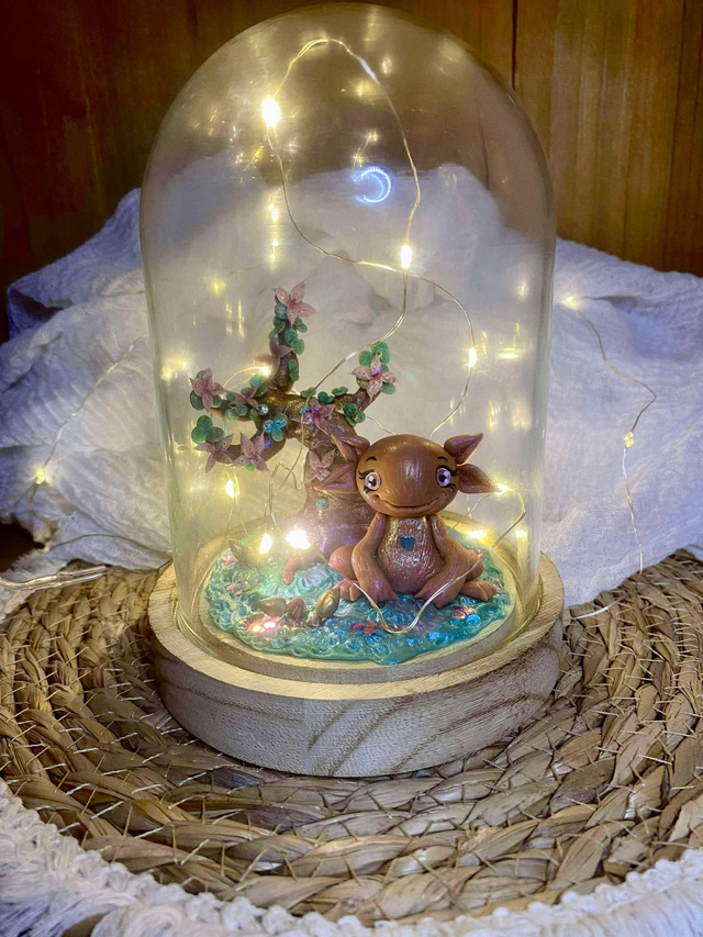 ✨ Ici, une douce créature des bois, nichée au pied d’un arbre en fleurs… un gardien bienveillant à adopter sous sa cloche magique.
