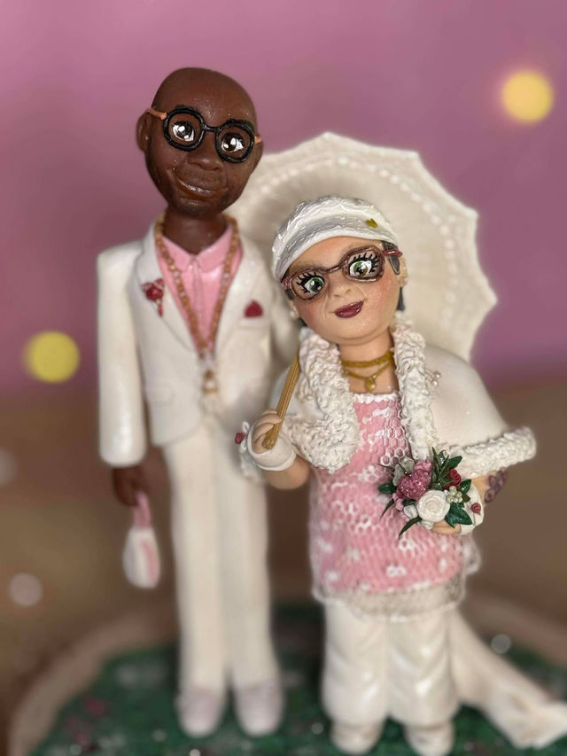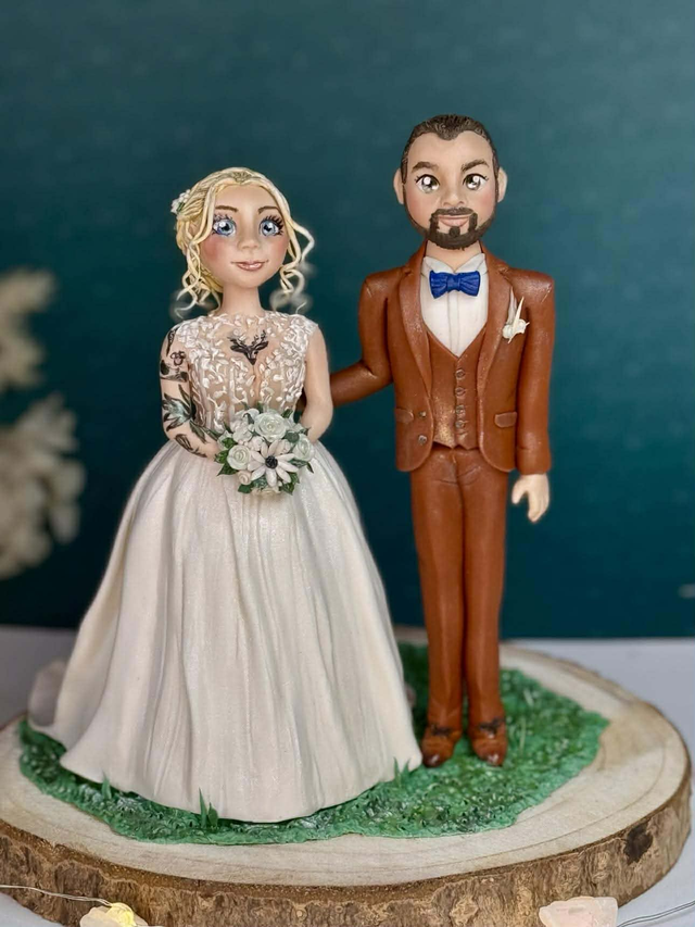 ✨ Cette déco de mariage met en lumière votre couple au sommet du gâteau. Sculpté et peint à la main, chaque détail reflète vos tenues, vos attitudes et l’ambiance du jour J. Bien plus qu’une décoration, elle devient un souvenir unique à conserver, symbole de votre histoire et de cette journée précieuse.